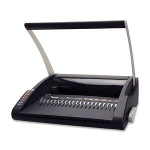 | Marketing Information | Redesigned for greater efficiency, lightweight compact manual comb binding machine punches up to 12 sheets and binds up to 225 sheets (using a 1" comb). Features ergonomic full-width handle for easy, effective operation. Independent, low-profile comb opener makes continuous punching and binding fast and easy. Machine offers adjustable edge guide for letter size and oversized sheets, spine size guide and horizontal punching. Lightweight, compact machine is ideal for personal and small office use. Comes with easy-to-follow QuickStep instructions. |